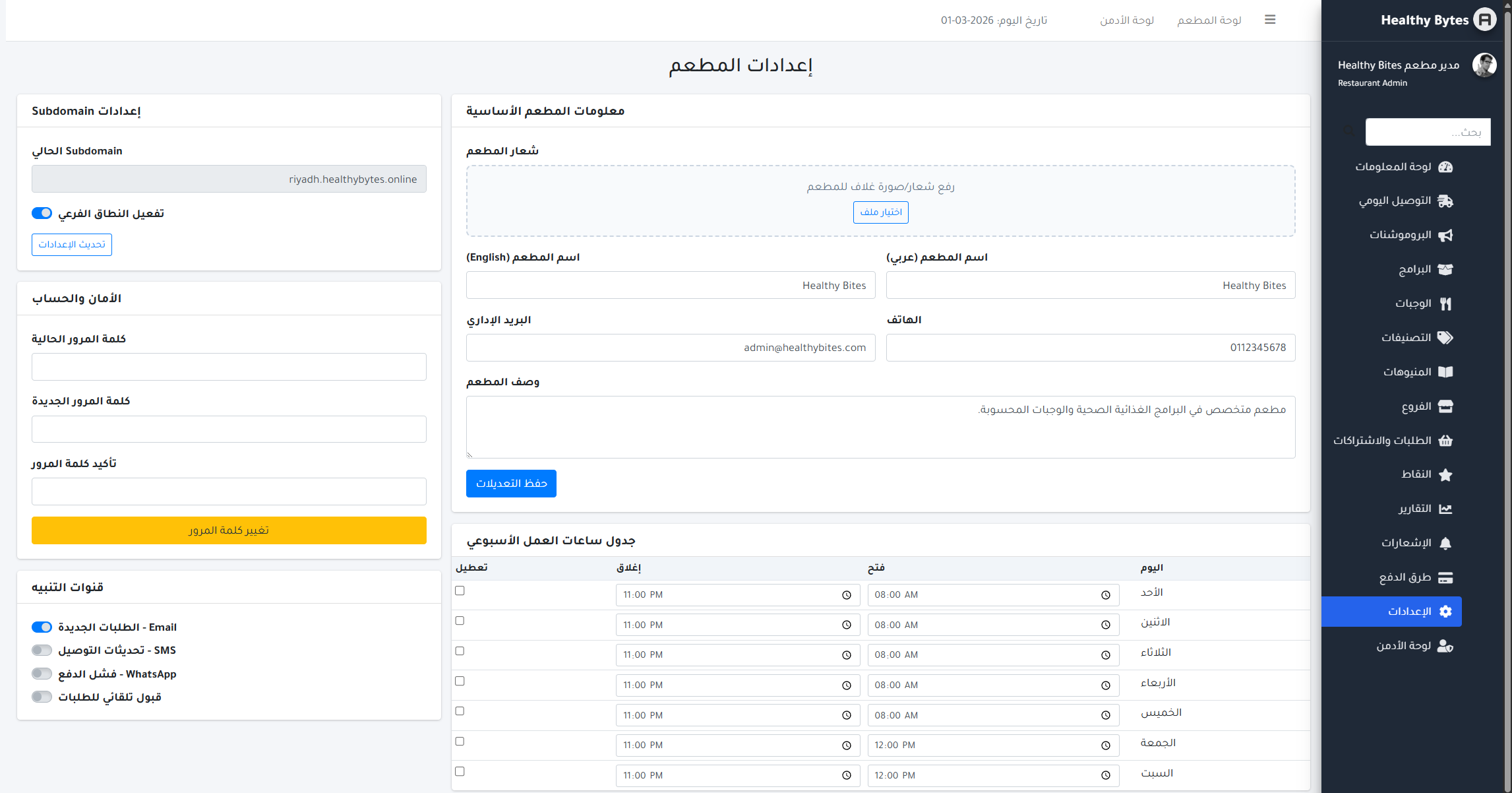 - الاستفادة من بيانات المطعم في لوحة التحكم